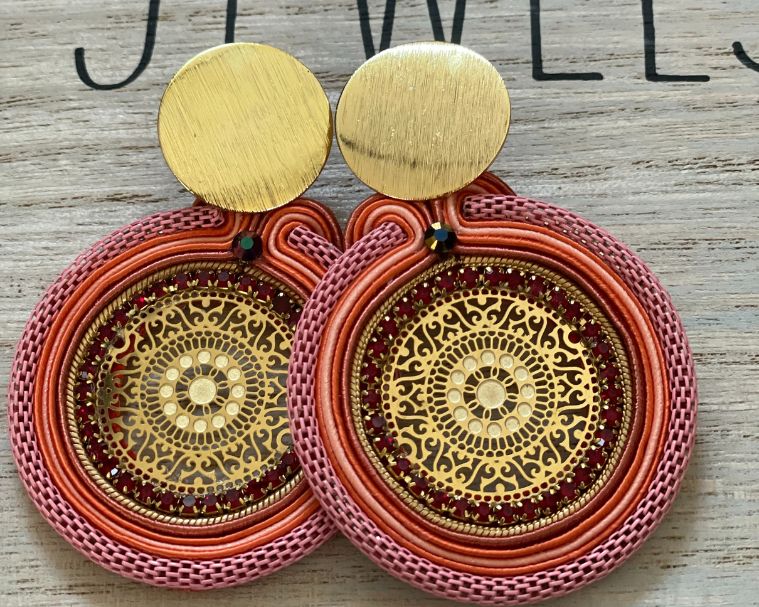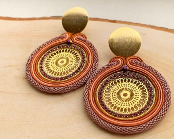 Elegant 24K Gold-Plated Soutache Statement Earrings. The perfect accessory to add a touch of sophisticated glamour to any outfit. Meticulously handcrafted using the intricate soutache technique, these earrings feature 24K gold-plated bronze mole for an exquisite, high-end finish.
